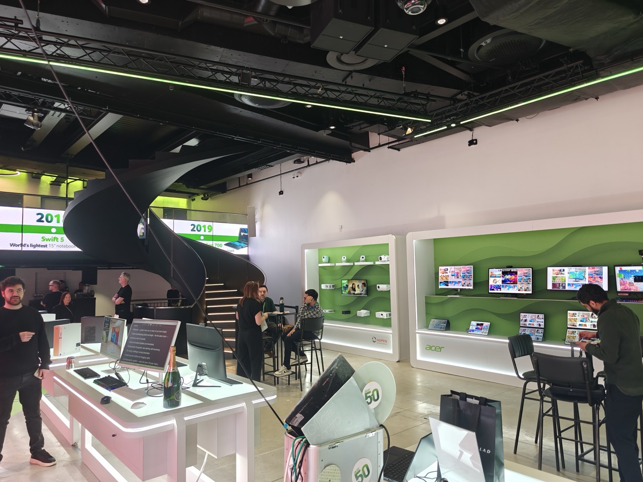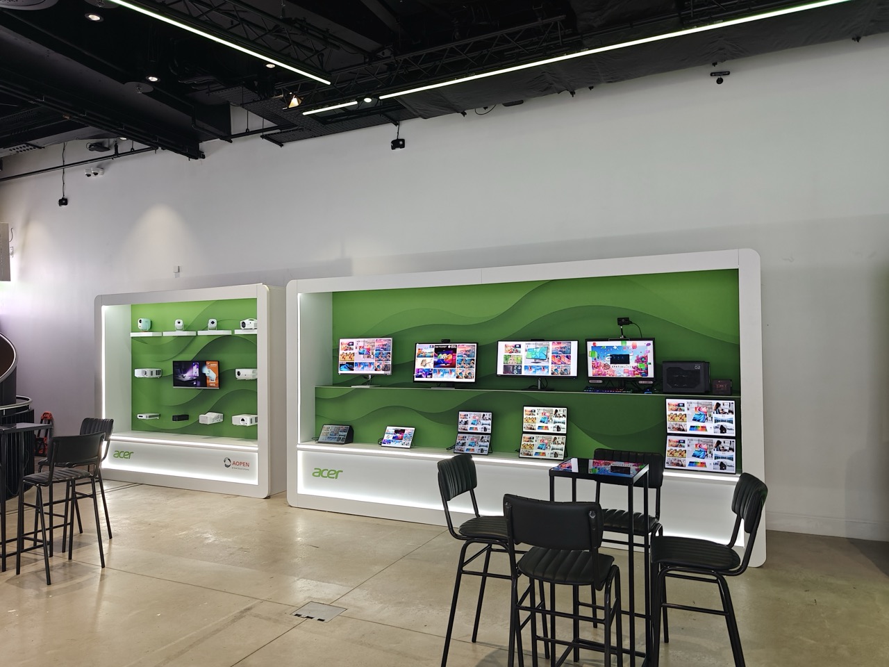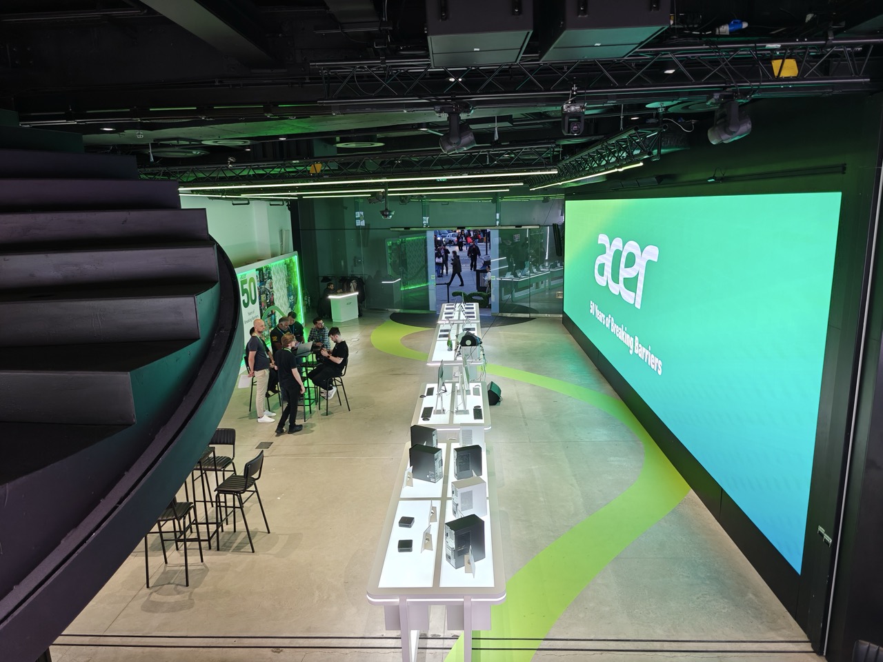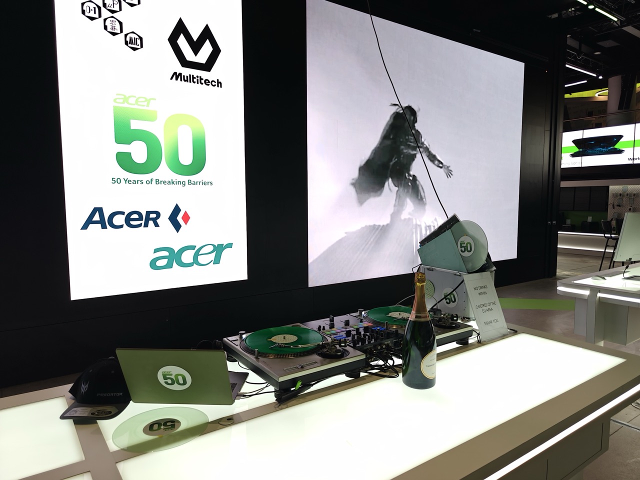 Adding a layer of thoughtfulness to the aesthetics, “Acer’s commitment to sustainability” inspired their request for green vinyl and thoughtful decor around the booth. This attention to detail reflects our meaningful approach to the turntable setup, ensuring that every element aligns with the brand’s values.