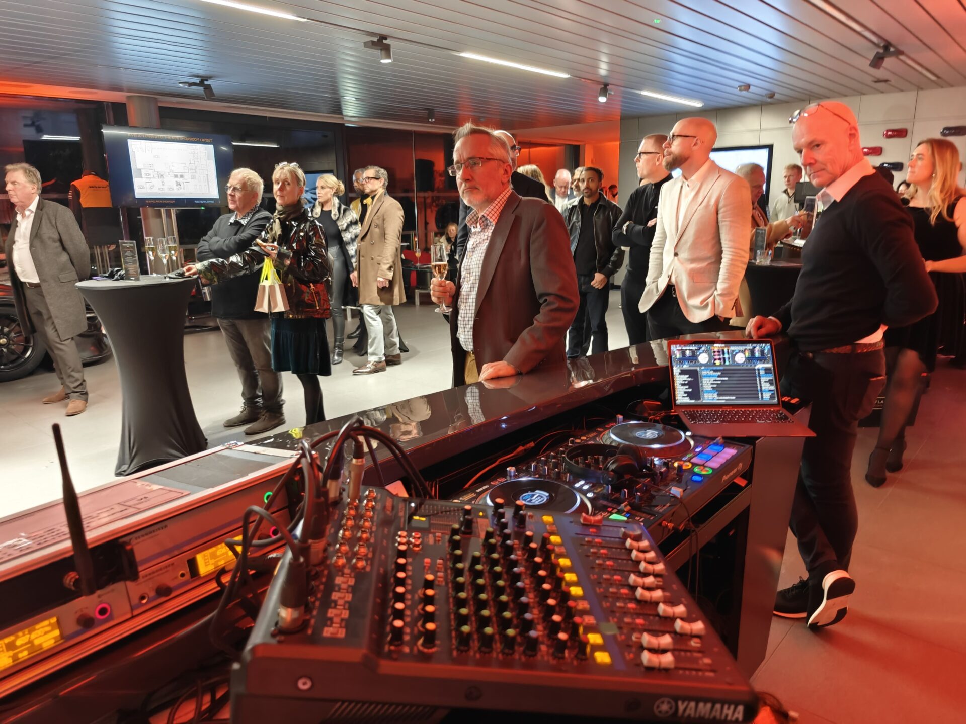 The setup included strategically placing speakers to optimize sound distribution throughout the showroom.